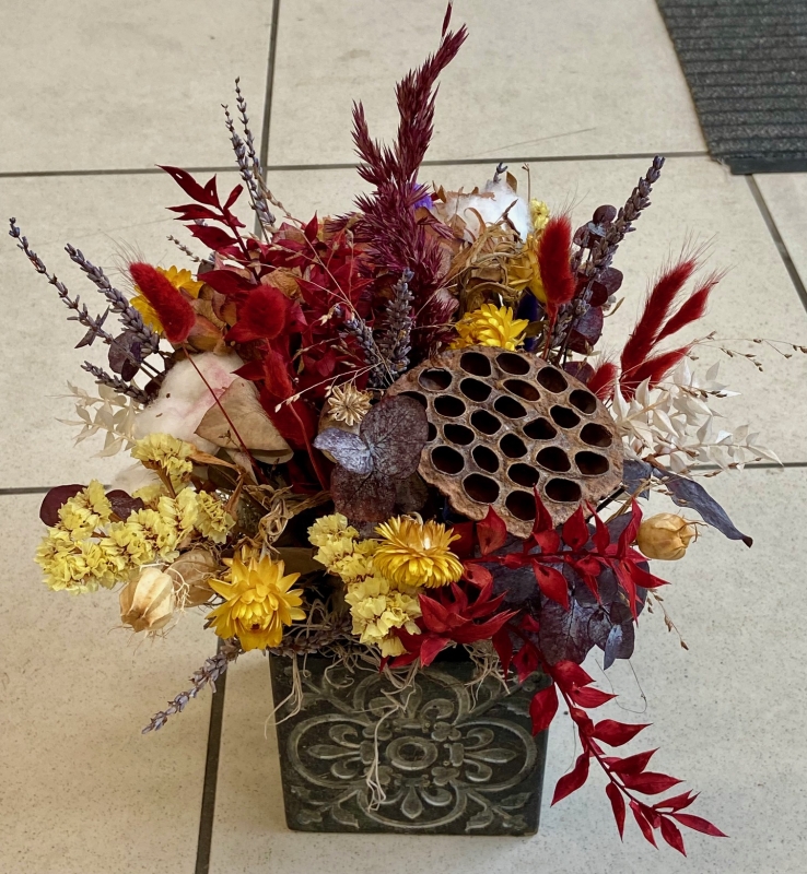 Dried flower arrangement, beautifully presented in a Ceramic Container, evoking autumn vibes, the ideal gift to enhance any home or office space.