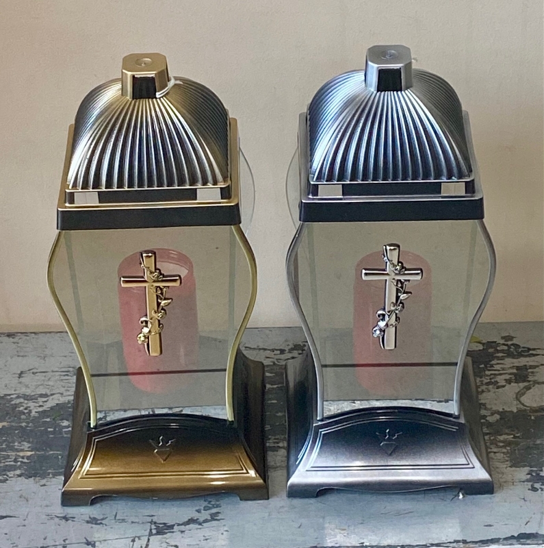 Honour the memory of your loved ones with a beautifully crafted Grave Lantern, designed to bring light, peace, and remembrance to any resting place. Available in a variety of styles and finishes, they make a thoughtful addition to any grave, memorial garden, or remembrance area. The lantern comes with a 3-day burning candle which can also be changed for an LED light if you prefer. 34cm Height.